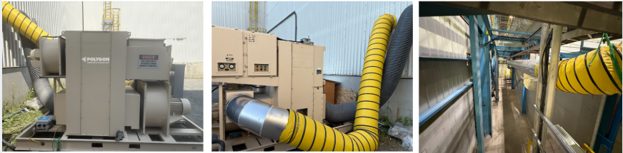 To resolve the ongoing humidity issues, Polygon Climate Control installed an HCU-9000 electric desiccant dehumidifier. Once installed, the improvement was immediate. The dehumidifier reduced moisture levels throughout the warehouse, stabilizing both relative humidity and moisture content. This broke the cycle of expansion and contraction affecting the cardboard cores.