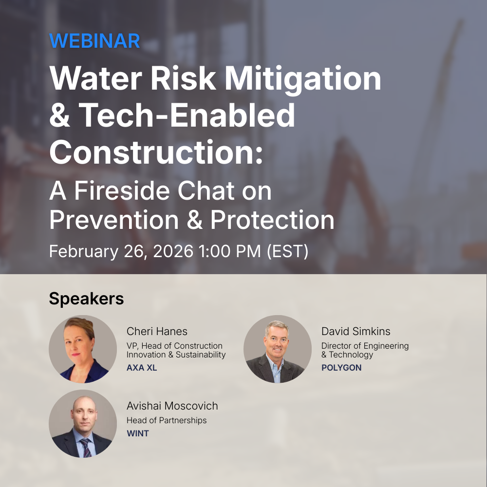 Join leaders from Polygon, AXA XL, and Wint for a fireside chat on the technology helping prevent water damage and mitigate risk on construction sites.