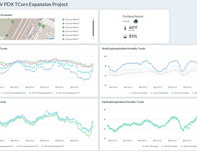 "Polygon US a travaillé avec nous pour mettre en place un système ExactAire personnalisé, un tableau de bord en ligne et un processus de reporting", a déclaré Joel Bennett, chargé de projets pour Hoffman Skanska sur le terminal de l'aéroport international de Portland (PDX). "Il fournit des données importantes sur les conditions exactes tout au long du projet, dans nos nombreuses zones de travail et élévations différentes. Nous pouvons voir s'il y a un problème immédiatement et, en fonction de l'emplacement du capteur, nous pouvons rapidement en déterminer la cause et obtenir le droit de travailler sur la solution."