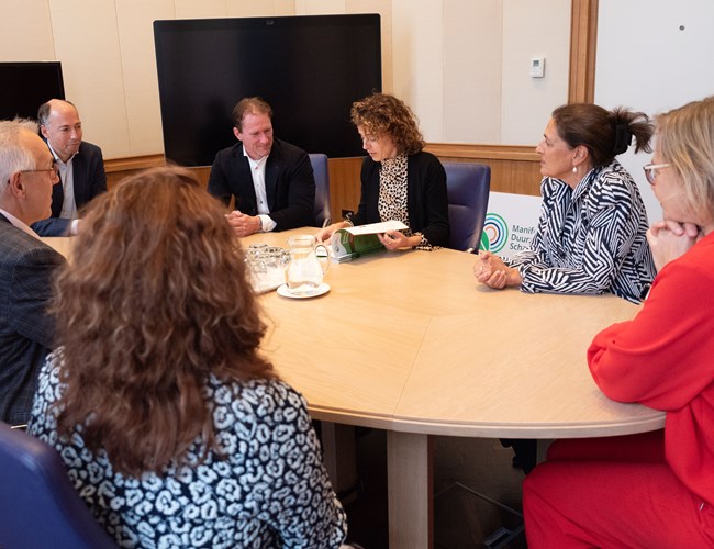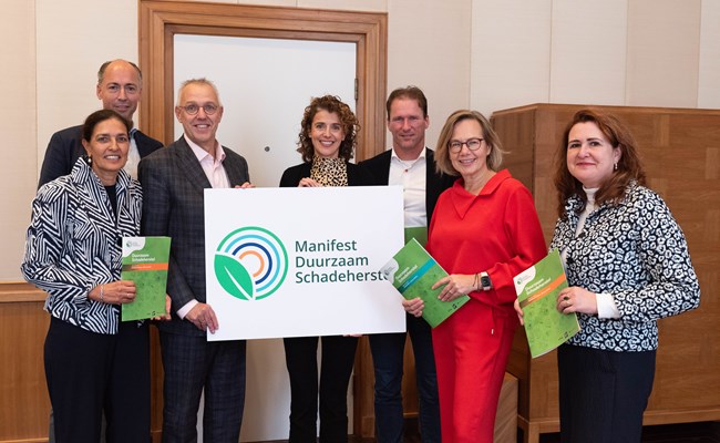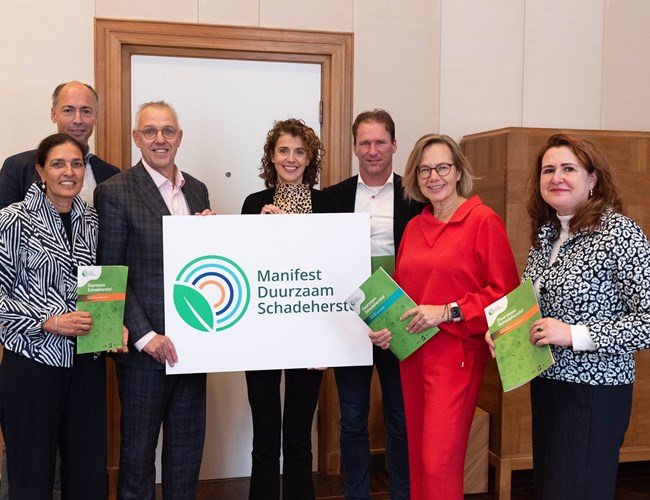 Geeke Feiter-van Heuvelen, directeur Verbond van Verzekeraars: “Tijdens dit traject hebben we een grote waterschade in ons kantoorpand gehad en gezien dat de impact van duurzaam schadeherstel echt significant is. Ook zien we dat die werkwijze nog niet voor alle partijen vanzelfsprekend is. Met deze brochures laten we zien dat het kan en geven we handreikingen hoe marktpartijen hiermee aan de slag kunnen gaan.”