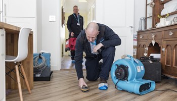 Residual water is pumped away. Furniture and valuables are removed to prevent further damage. Energy-efficient drying and dehumidification equipment, and offsite remote technology is used to monitor the drying process. Additionally, Polygon takes responsibility for restoration, like replacement of wall and floor materials, of the site.