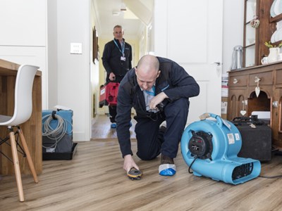 Our water damage restoration services typically involve pumping away residual water and removing furniture and other valuables to minimise further damage. Once the damaged site is under control, the drying process begins, using energy-efficient drying and dehumidification equipment that might be remotely monitored with sensor solutions.