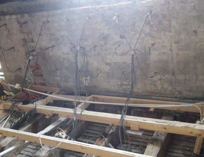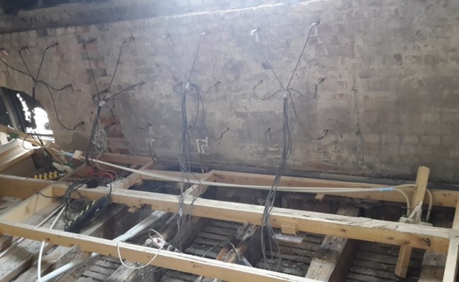 “Nästa steg är värmebehandling då svampen dör vid 55 grader celcius”, berättar Fredrik. “Om ett fundament som exempelvis en murstock bilats bort, sprayas området och ytan får torka. Därefter gjuts en ny yta som fylls med flytande betong”, förklarar han. “Eftersom svampen växer i hålrummen i betong och tegel placeras värmemattor ut på dessa material. Trä kan inte behandlas med värme pga brandrisken. I stället tas angripet trämaterial omsorgsfullt bort och går inte det gäller besprutning”, uppger Fredrik.
