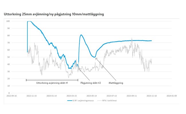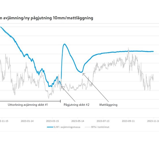 I Sverige bygger vi ofta med fuktiga material som betong och avjämning, och uttorkning blir lätt en flaskhals i byggprojekt. Polygon har utvecklat en unik sensor som gjuts in i avjämningen och mäter både uttorkning och uppfuktning vid ytskiktet. Hela processen kan alltså enkelt följas - från gjutning till färdigt golv!